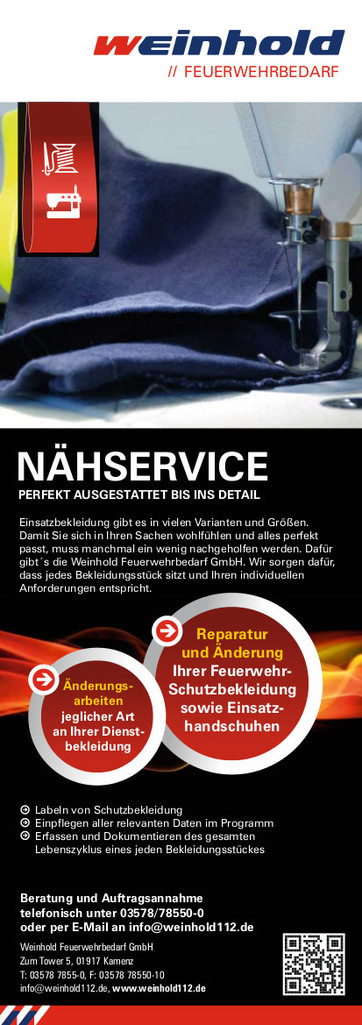 Reparatur und Änderung Ihrer Feuerwehr-Schutzbekleidung sowie Einsatzhandschuhen.