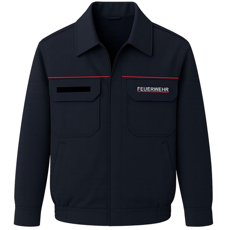 - 65% Polyester 35% Baumwolle- Starlight-strong blue- zwei Brusttaschtaschen mit verdecktem Klettverschluß- zwei Schubtaschen- Napoleontasche mit Reißverschluß- linke Brustpatte Schriftzug FEUERWEHR silber, rot unterstrichen- Direkteinstickung des Brandenburgischen Adlers - Vorder-und Rückenteil mit eingearbeiteter roter Biese- dehnbarer Jackenbund mit Gummizug- Schultertunnel - Liefergrößen: Damen 30-60 / 16-28 / 64-120- Übergrößenzuschlag:Gr. 50+52 (25+26, 100+104) - 10%Gr. 54+56 (27+28, 108+112) - 20%ab Gr. 58 (29,116) - 30%- ab 10/50 Stück Staffelpreise